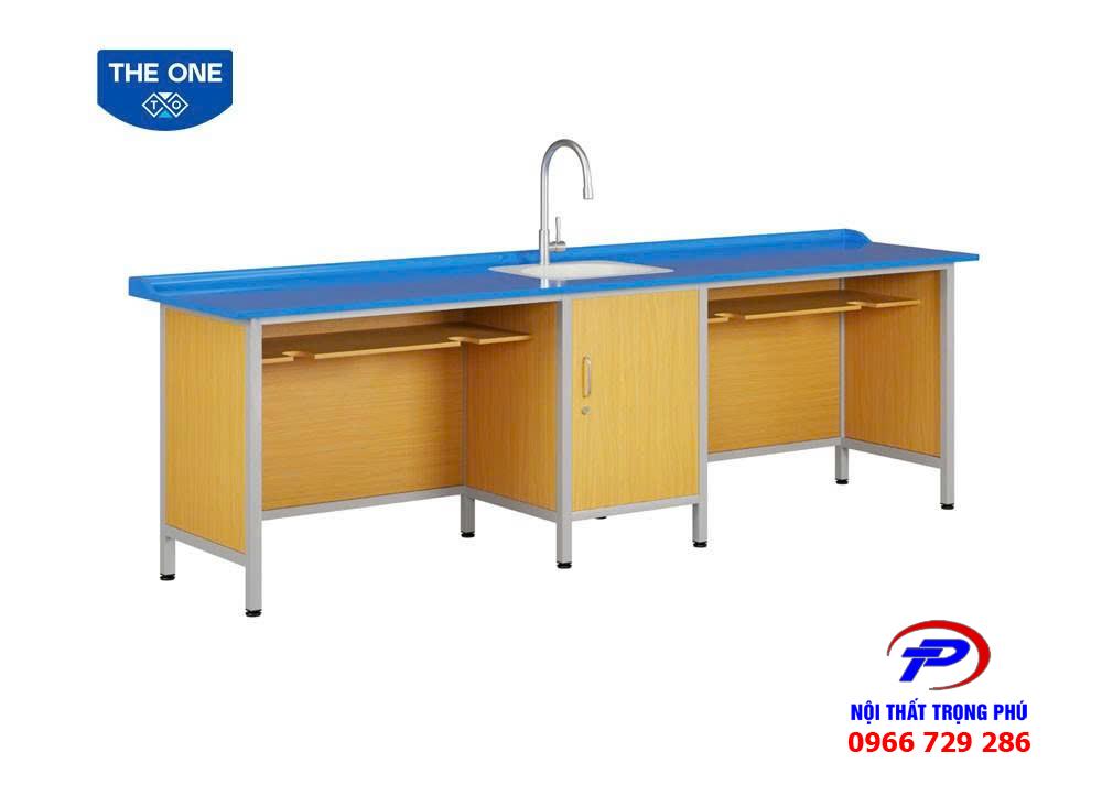 Đặc biệt, bàn được tích hợp chậu rửa và vòi nước, hỗ trợ tối đa cho việc vệ sinh dụng cụ và thao tác thí nghiệm. Thiết kế tối ưu giúp người dùng thao tác thuận tiện, đảm bảo an toàn trong quá trình làm việc.