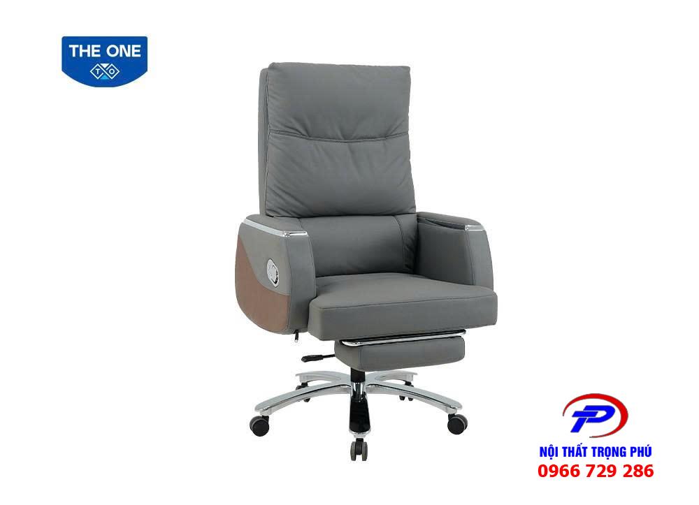 Ghế được thiết kế với kiểu dáng bề thế, phần tựa lưng cao ôm trọn cơ thể, giúp nâng đỡ cột sống hiệu quả. Tay ghế ốp mạ sáng bóng tạo điểm nhấn tinh tế, mang lại vẻ ngoài sang trọng và hiện đại.