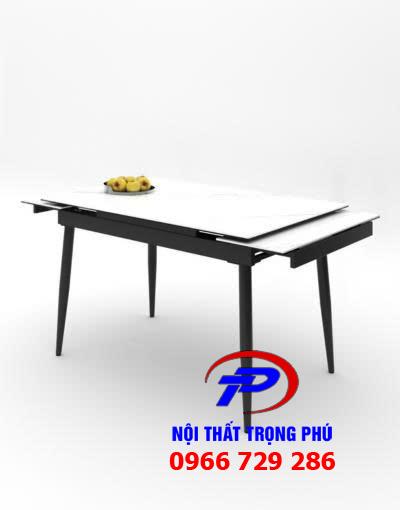 Mặt bàn được cấu tạo 2 lớp dày 12mm, trong đó lớp trên là đá Ceramic màu trắng vân cao cấp, có khả năng chống trầy xước, chịu nhiệt tốt và dễ dàng vệ sinh. Lớp dưới dán kính cường lực màu đen, giúp tăng độ bền và đảm bảo an toàn trong quá trình sử dụng.
