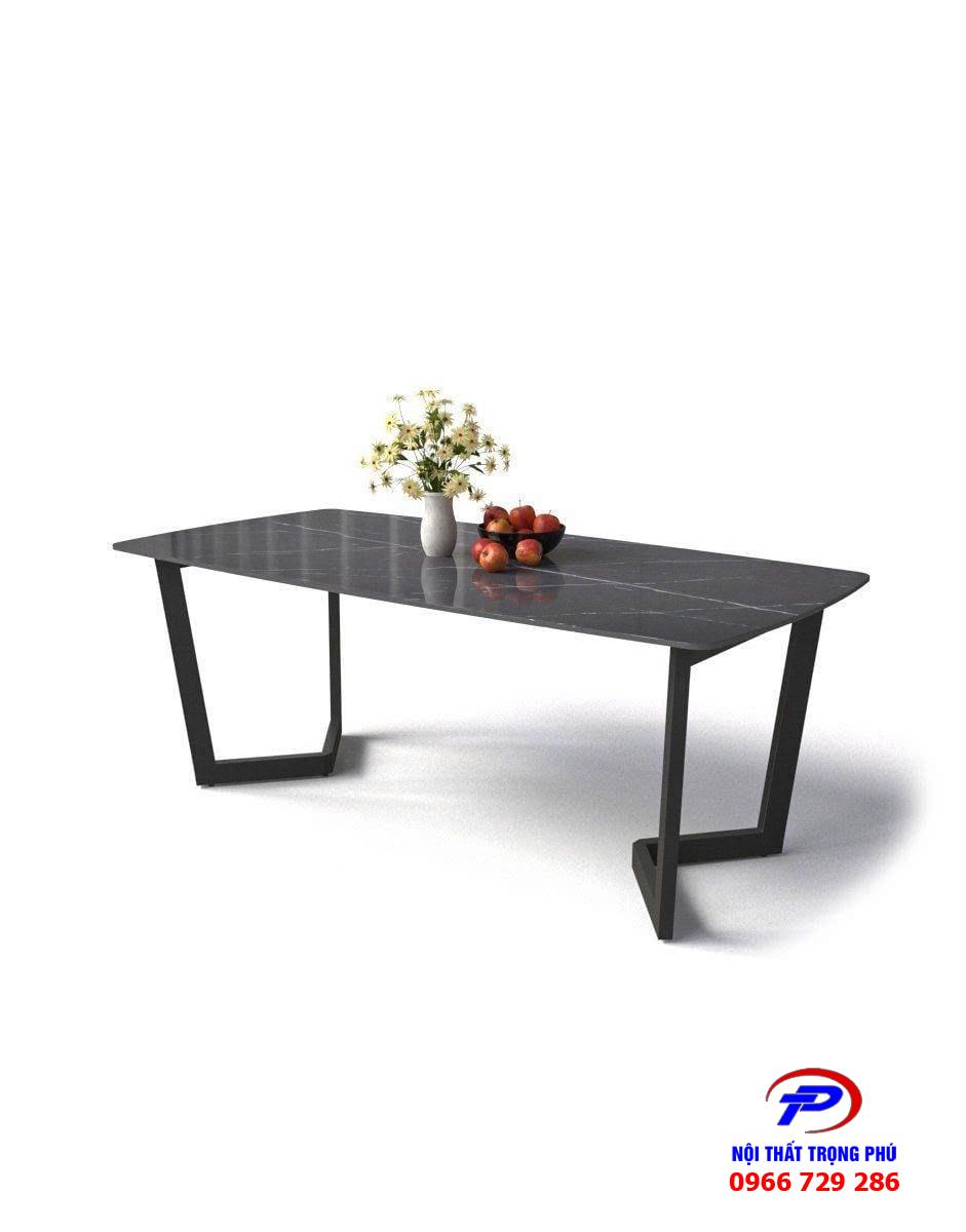 Bàn có kích thước W1400 x D800 x H737 mm, phù hợp cho gia đình từ 4–6 người, dễ dàng bố trí trong nhiều không gian như căn hộ chung cư, nhà phố hay biệt thự hiện đại. Phần chân bàn chữ V được làm từ sắt hộp 30x60 sơn tĩnh điện màu đen sần hoặc kem, vừa chắc chắn vừa tạo cảm giác thanh thoát, hiện đại.