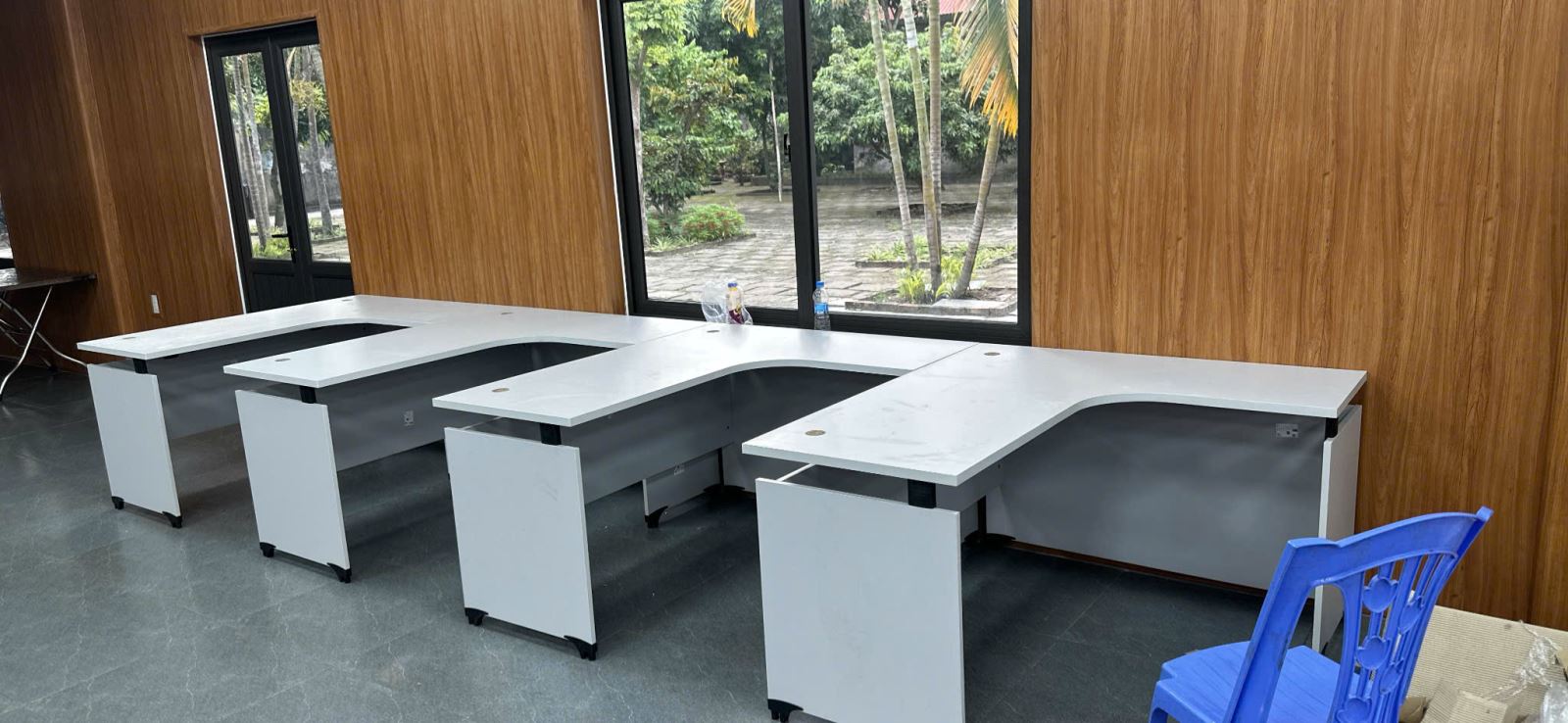 Bàn lượn TP-ATL14 là mẫu bàn chữ L thiết kế lượn cong mềm mại ở góc trong, giúp người ngồi thao tác thuận tiện hơn, dễ xoay ghế và tăng diện tích sử dụng mặt bàn so với bàn chữ L vuông truyền thống.