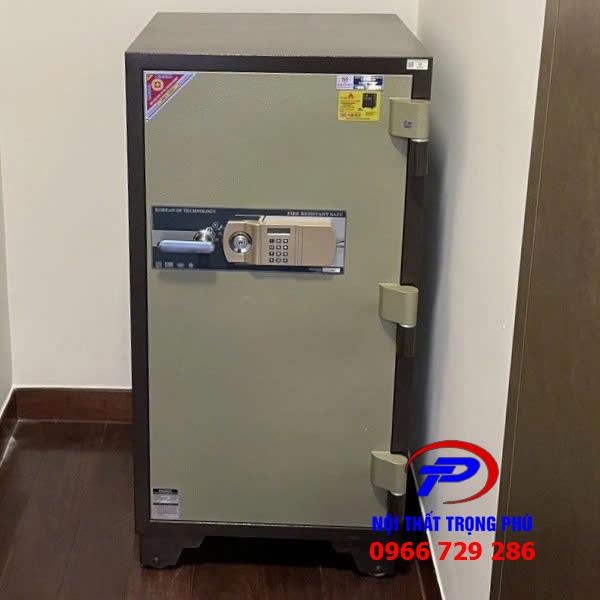 Két có trọng lượng 200kg, thân két được cấu tạo từ thép 2 lớp chắc chắn, ở giữa là lớp bột chống cháy cách nhiệt giúp bảo vệ tài sản trong trường hợp hỏa hoạn. Kết cấu vững chắc giúp chống trộm bê két và hạn chế tối đa việc di chuyển trái phép.