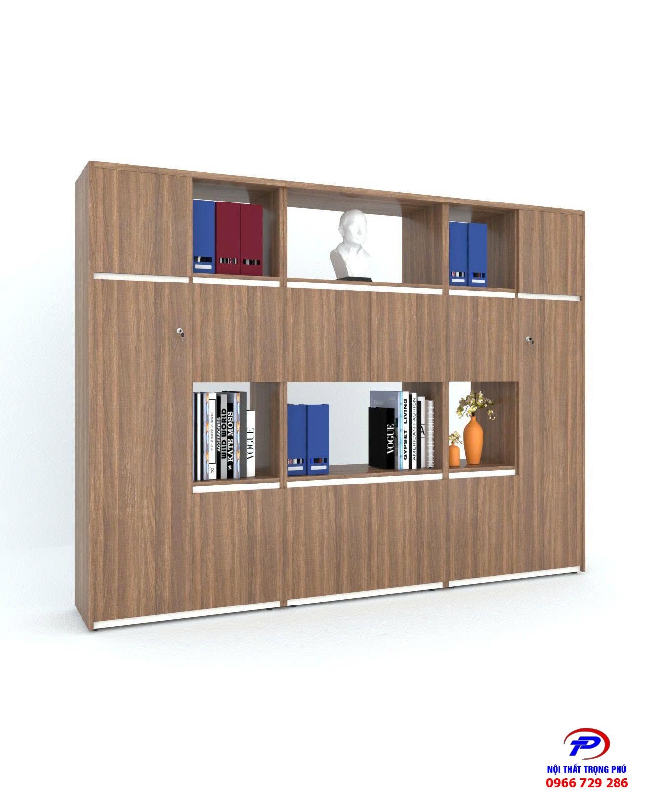 Điểm nổi bật của tủ gỗ TG07-C3 nằm ở sự kết hợp thông minh giữa khoang cánh kín và đợt trang trí mở. Các khoang kín giúp bảo quản hồ sơ, tài liệu quan trọng tránh bụi bẩn, trong khi hệ đợt mở cho phép trưng bày sách, vật phẩm trang trí, bằng khen hoặc tài liệu thường xuyên sử dụng, mang lại sự tiện lợi và điểm nhấn thẩm mỹ cho văn phòng.